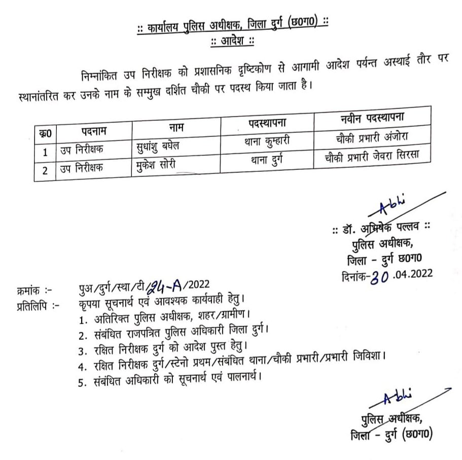 पुलिस स्थापना बोर्ड की अनुशंसा पर आधा दर्जन से अधिक अफसरों के तबादले किए गए हैं।