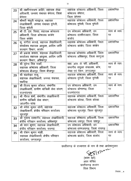 राज्य शासन ने वित्त विभाग में बड़ी संख्या में कोषालय अधिकारियों के तबादले किए हैं। विभाग ने कुल 35 अफसरों का ट्रांसफर किया है। देखें सूची-