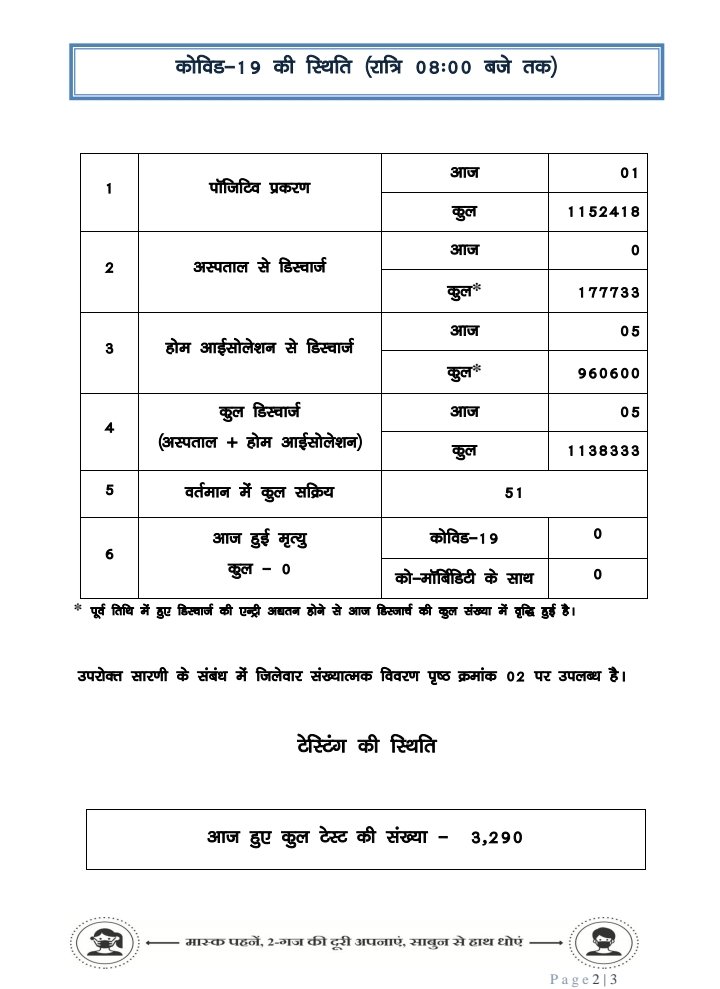 प्रदेश में आज रात तक 1 पॉजिटिव