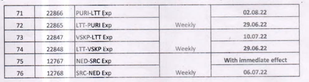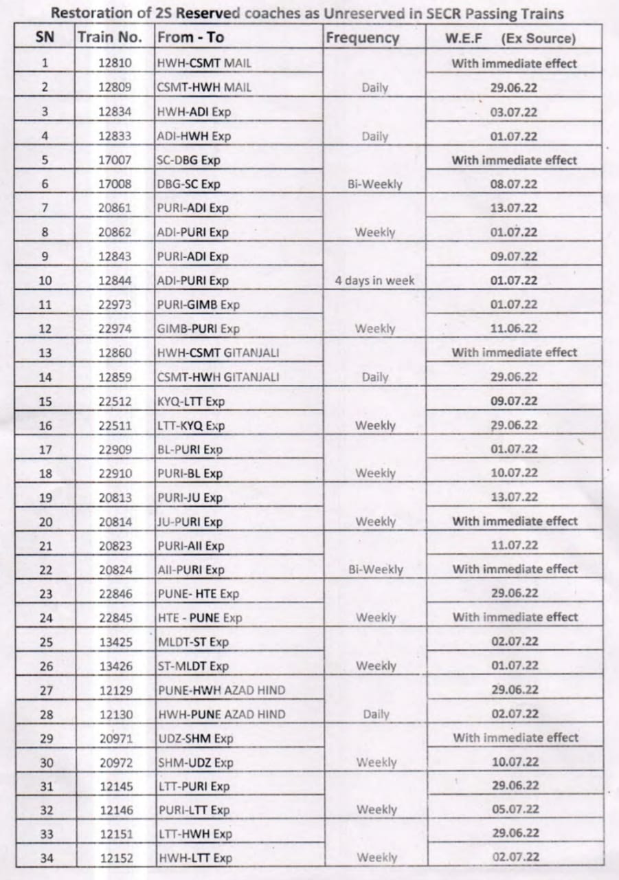 दपूम रेलवे से टर्मिनेटिंग और पासिंग ट्रेनों में 2S आरक्षित कोचों को अनारक्षित कोच के रूप में तत्कालिक एवं निर्धारित तिथि से बहाल