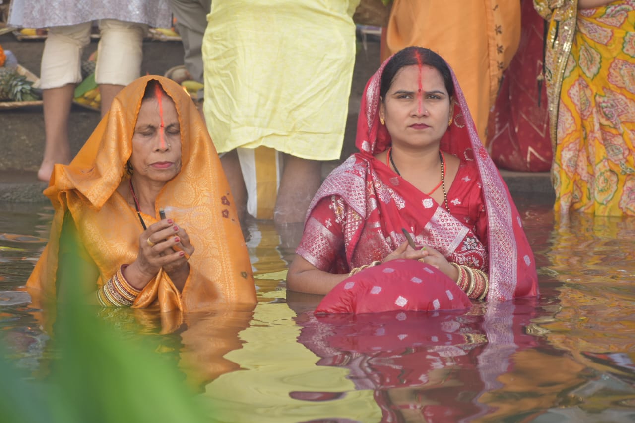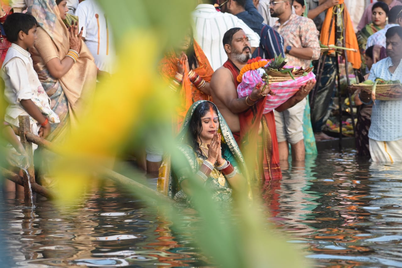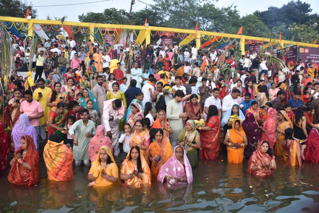 राजधानी के 80 तालाब घाटों में ढलते सूर्य को अर्घ्य