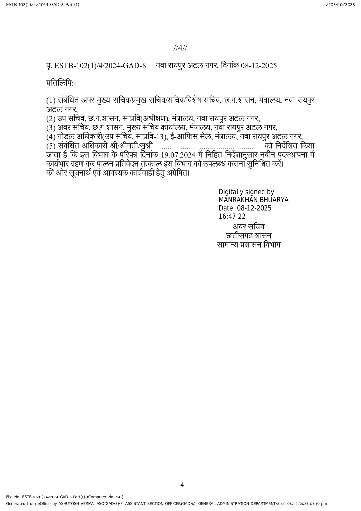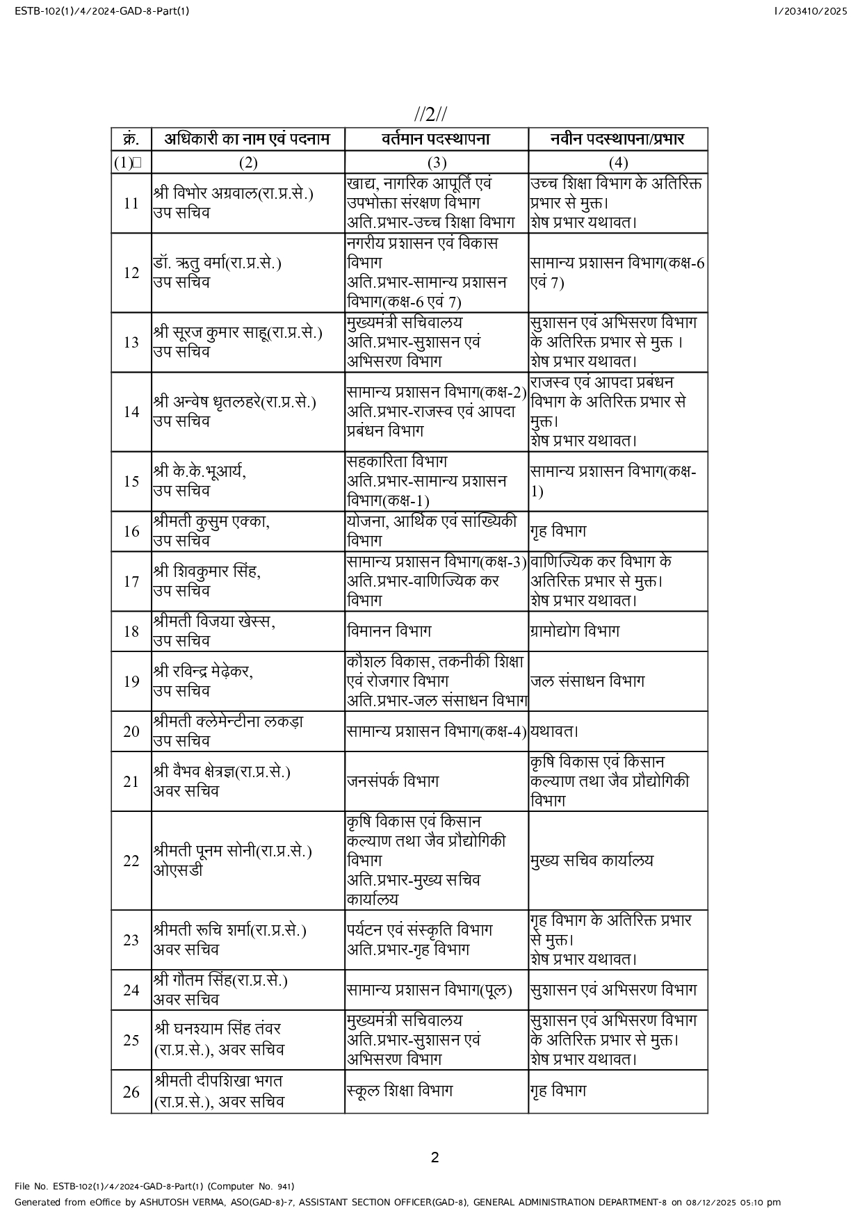 मंत्रालय में 19 उप सचिव,17 अवर सचिवों के तबादले