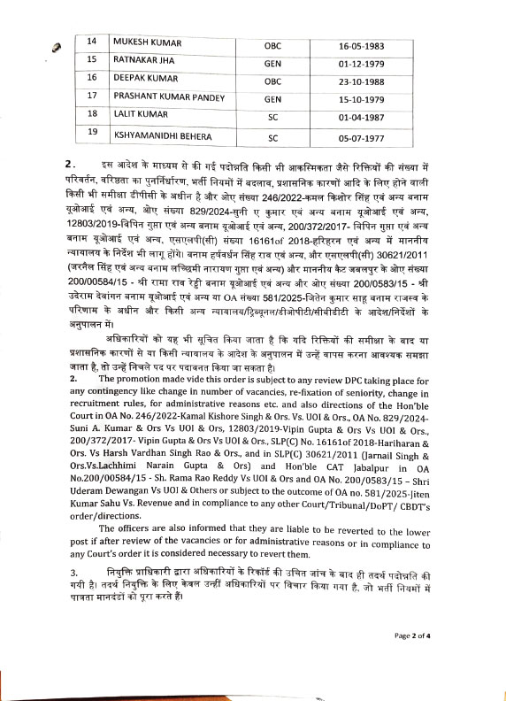 रायपुर, 1 जनवरी। आयकर विभाग ने बड़े पैमाने पर देश भर में इनकम टैक्स इंस्पेक्टर, सहायक, संयुक्त आयुक्तों को पदोन्नत किया है। इनमें एमपी सीजी सर्किल के 19 निरीक्षक आईटीओ पदोन्नत किए गए हैं। वहीं एमपी सीजी के 4सहायक आयुक्त पदोन्नत हुए हैं। वहीं राजस्थान के जयपुर सर्किल के प्रधान आयुक्त सुमीत कुमार एमपी सीजी सर्किल के भी प्रभारी प्रधान आयुक्त होंगे। ललित कृष्ण सिंह दहिया के सेवानिवृत्त पर उन्हें प्रभार दिया गया है। इसी तरह से एमपी सीजी सर्किल के डीजी अन्वेषण बिजय कुमार पंडा को एपी तेलंगाना का भी प्रभार सौंपा गया है।