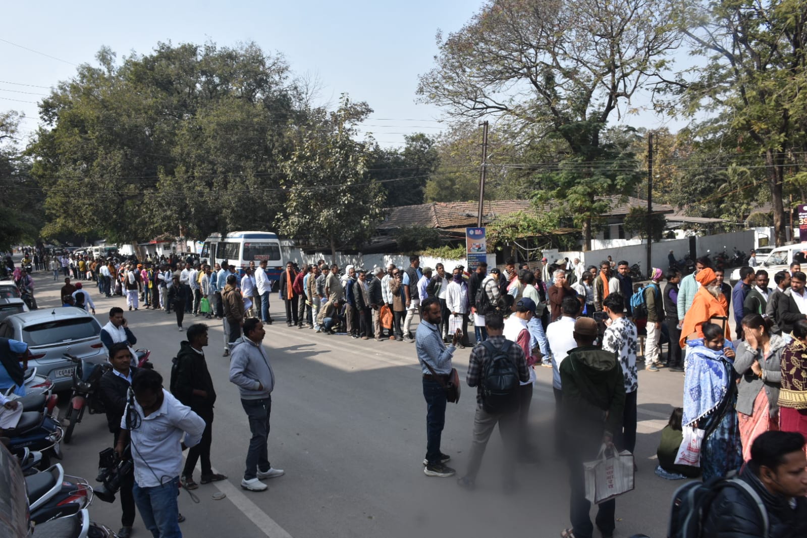 रायपुर, 8 जनवरी। बीते नवंबर के बाद पहली बार हो रहे मुख्यमंत्री जनदर्शन में अपनी समस्या मांग पूरी कराने गुरुवार को प्रदेश भर से लोगों की भीड़ जुटी। लोग ठंड की परवाह किए बिना सुबह 6 बजे से लाइन पर लगे रहे । इन फरियादियों की गृहमंत्री विजय शर्मा के बंगले तक लंबी लाइन लगी है।