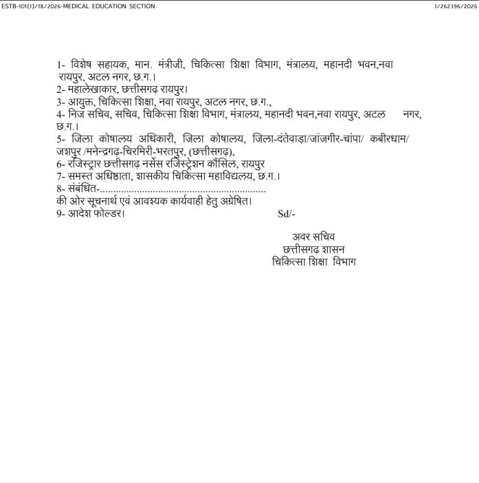 चिकित्सा शिक्षा विभाग ने 5 न‌ए मेडिकल कॉलेजों में न‌ए डीन नियुक्त कर दिया है। इनमें जशपुर, मनेंद्रगढ़, जांजगीर चांपा, कवर्धा दंतेवाड़ा शामिल हैं। इन पर न‌ए कालेज प्रारंभ करने की भी जिम्मेदारी रहेगी ।