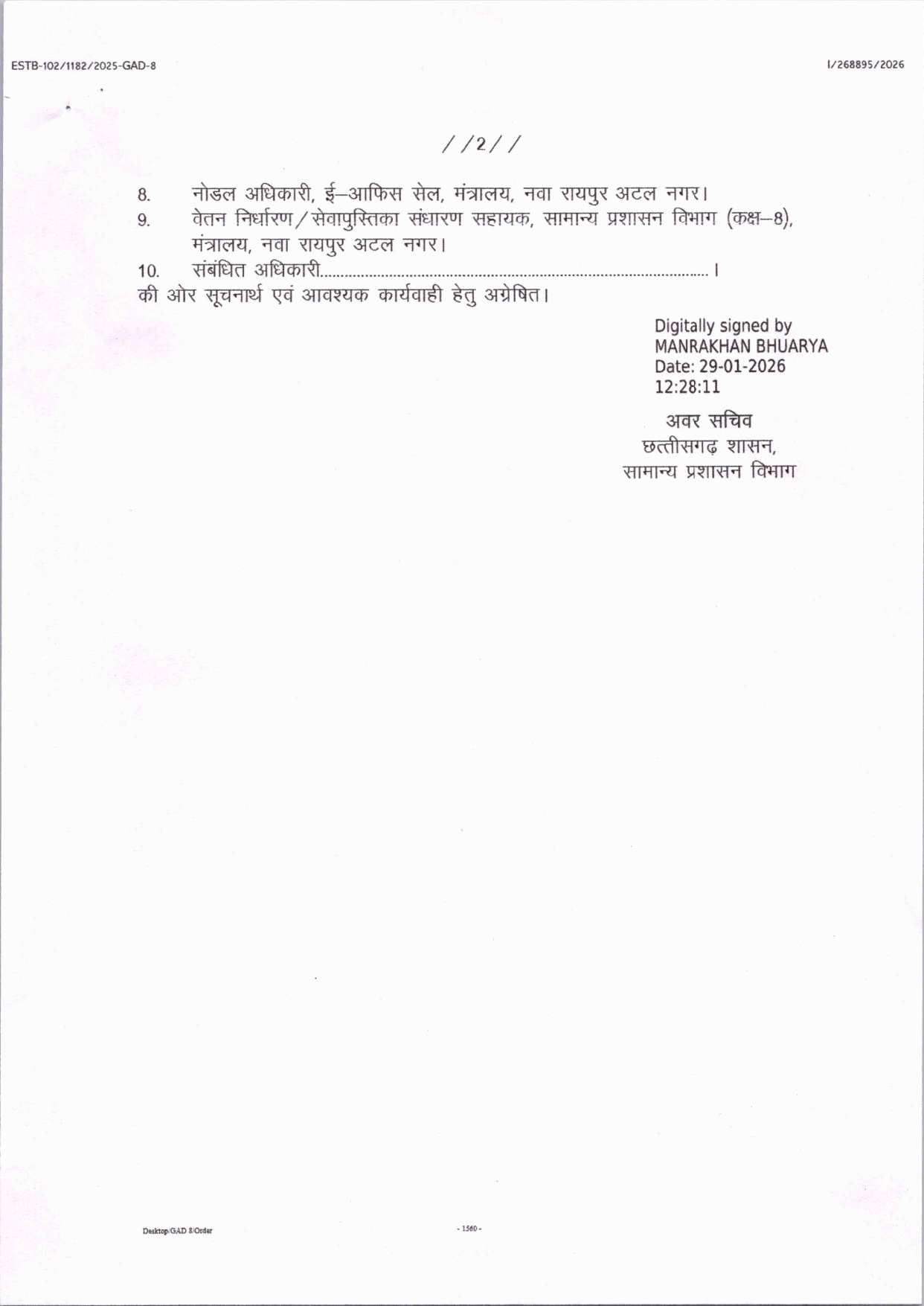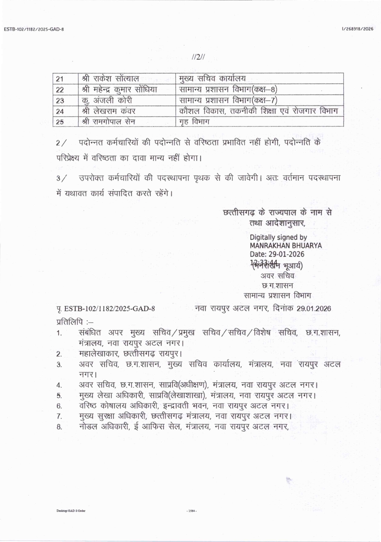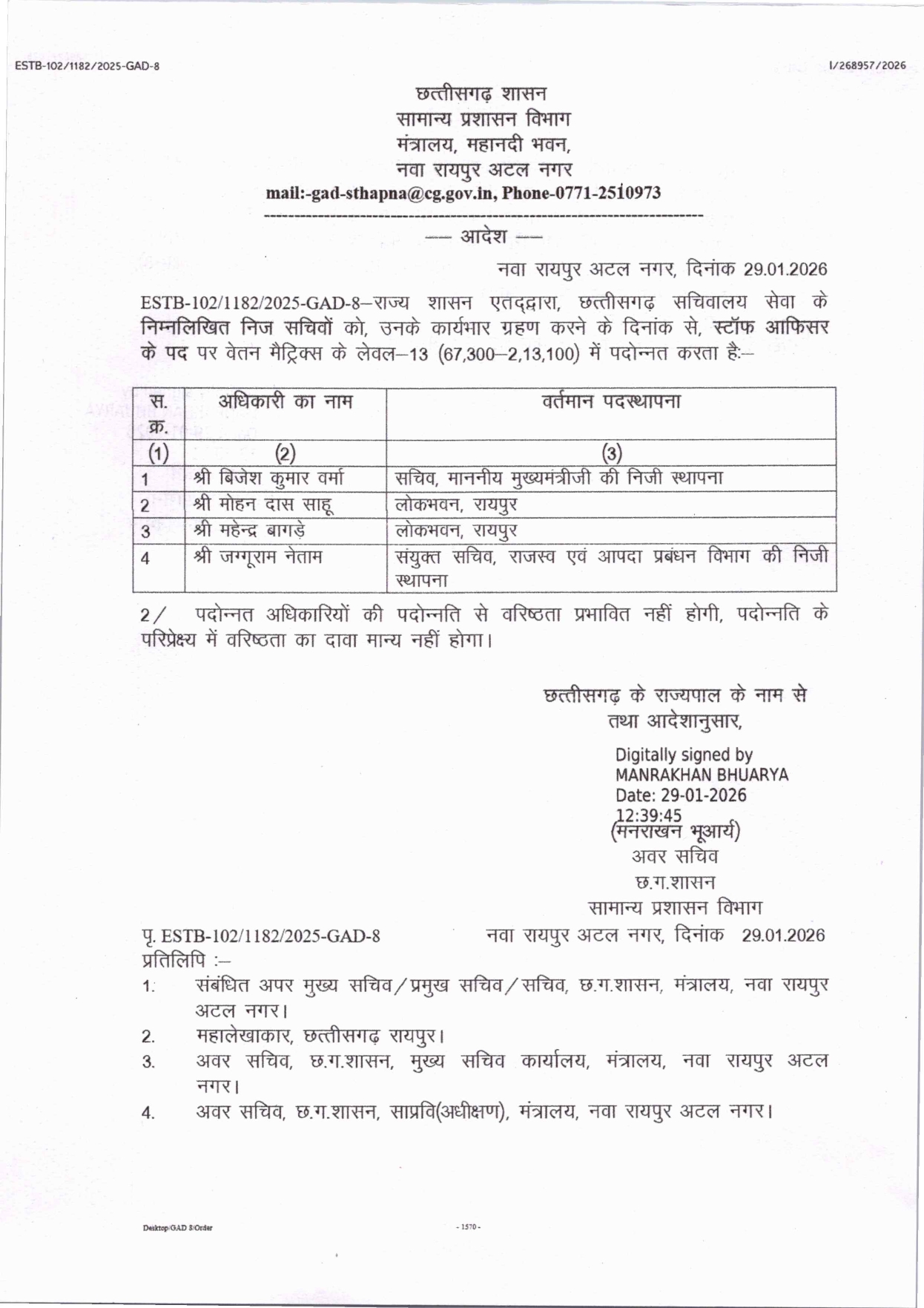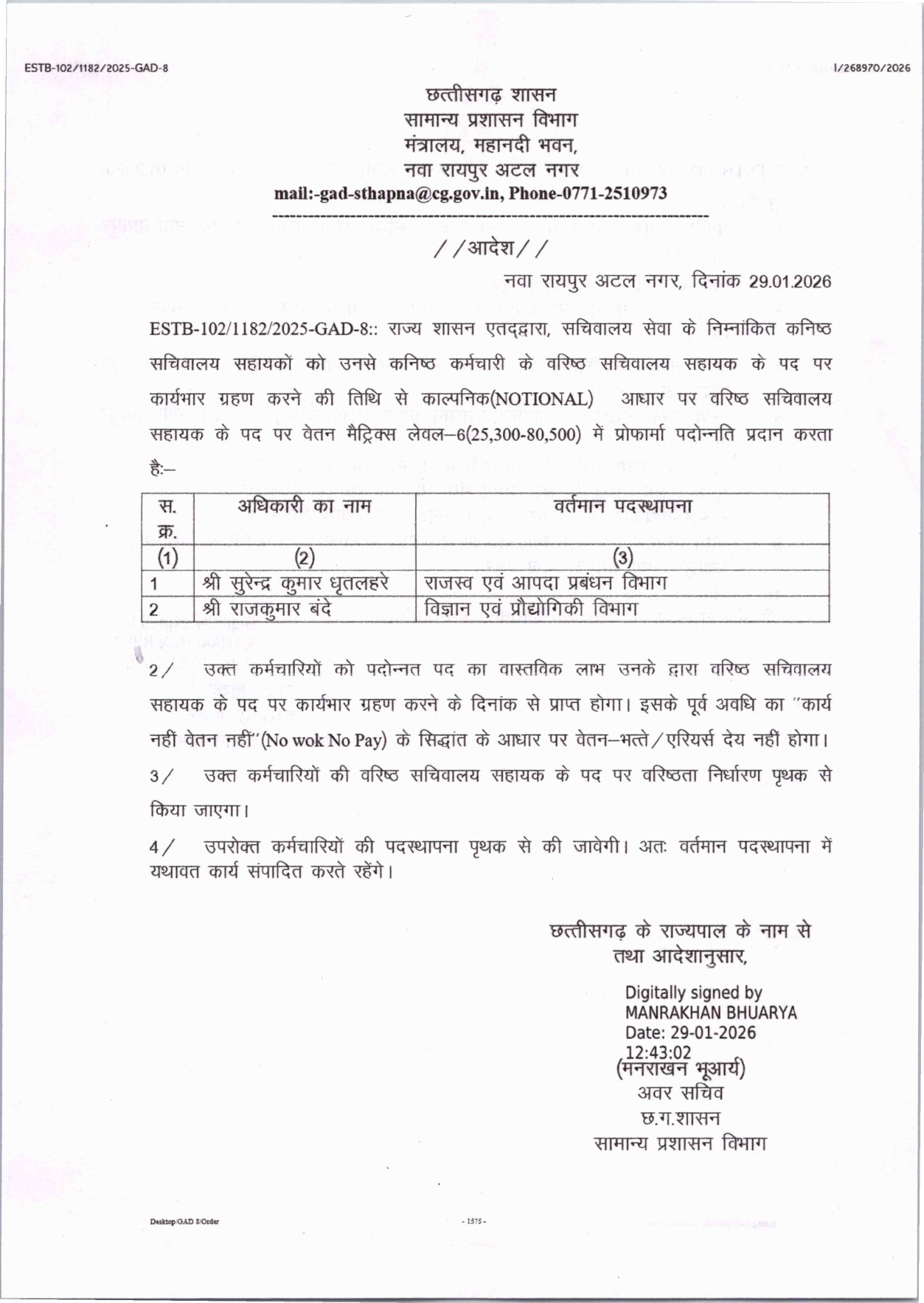 मंत्रालय संवर्ग के 45 अधिकारी कर्मचारियों को पदोन्नति