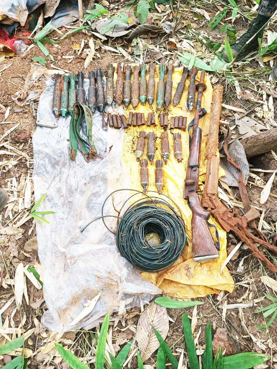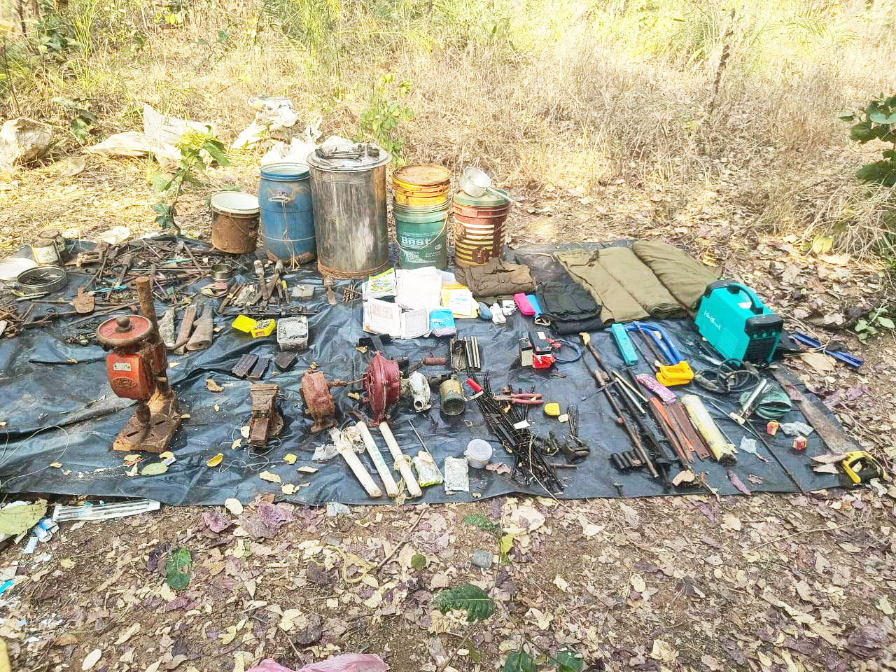 बरामद सामग्री में दो इंसास रायफल, एक 303 रायफल, एक देशी कट्टा, एक सुरका (देशी बीजीएल लॉन्चर), दो 12 बोर बंदूक, दो सिंगल शॉट हथियार, 127 नग जिंदा राउंड, 8 मैगजीन, 22 बीजीएल सेल, एक बंडल इलेक्ट्रिक वायर तथा हथियार मरम्मत और निर्माण से संबंधित विभिन्न उपकरण शामिल हैं।