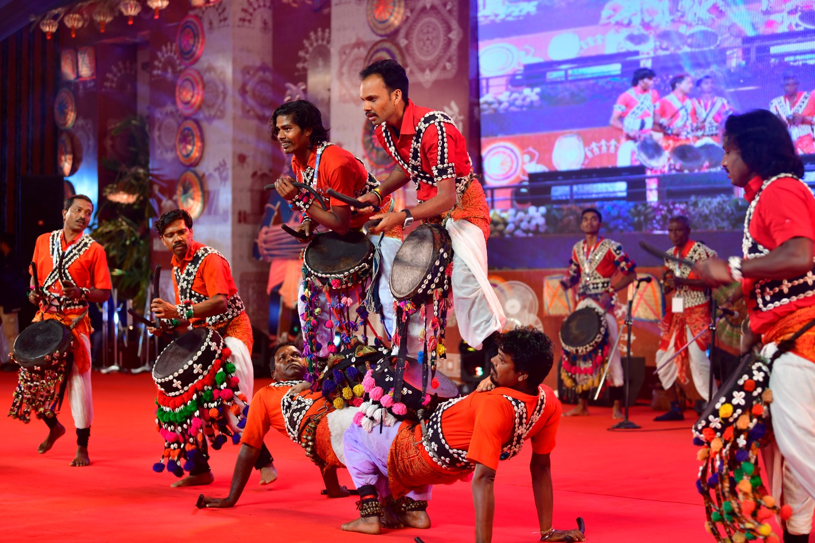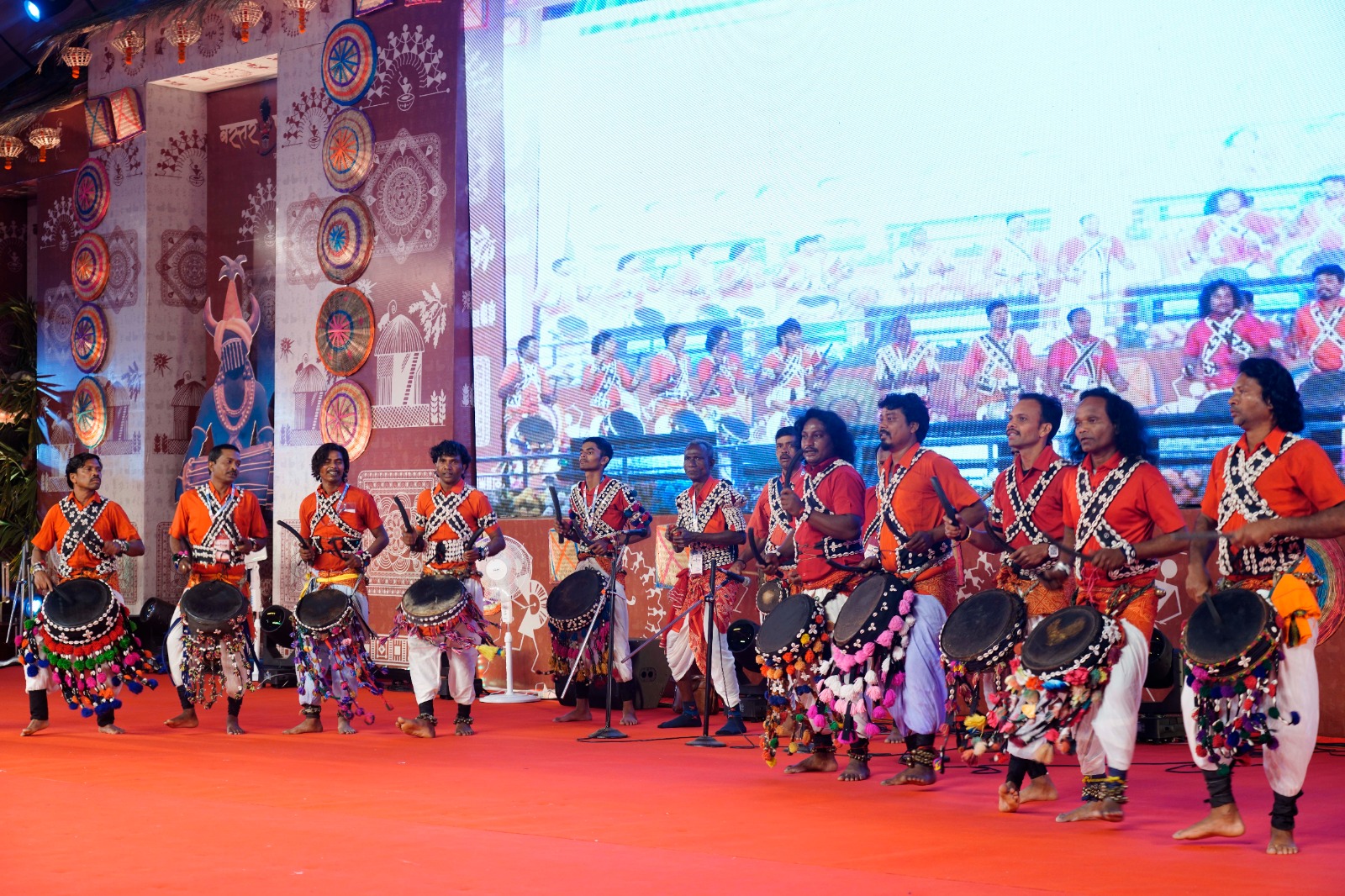 ​सांस्कृतिक संध्या का मुख्य आकर्षण अन्य प्रदेशों से आए जनजातीय दलों की मनमोहक प्रस्तुतियां रहीं, जिन्होंने दर्शकों को अपनी कुर्सियों से बंधे रहने पर विवश कर दिया। मंच पर जैसे ही पड़ोसी राज्य मध्य प्रदेश के कलाकारों ने 'गुदुम बाजा नाच' की थाप छेड़ी, वाद्य यंत्रों की गूंज से पूरा वातावरण ऊर्जा से सराबोर हो गया। इस जोश के बीच आंध्र प्रदेश की 'डिमसा' नृत्य की लय और सामूहिक पद-संचालन ने दर्शकों को एक अलग ही दुनिया की सैर कराई।