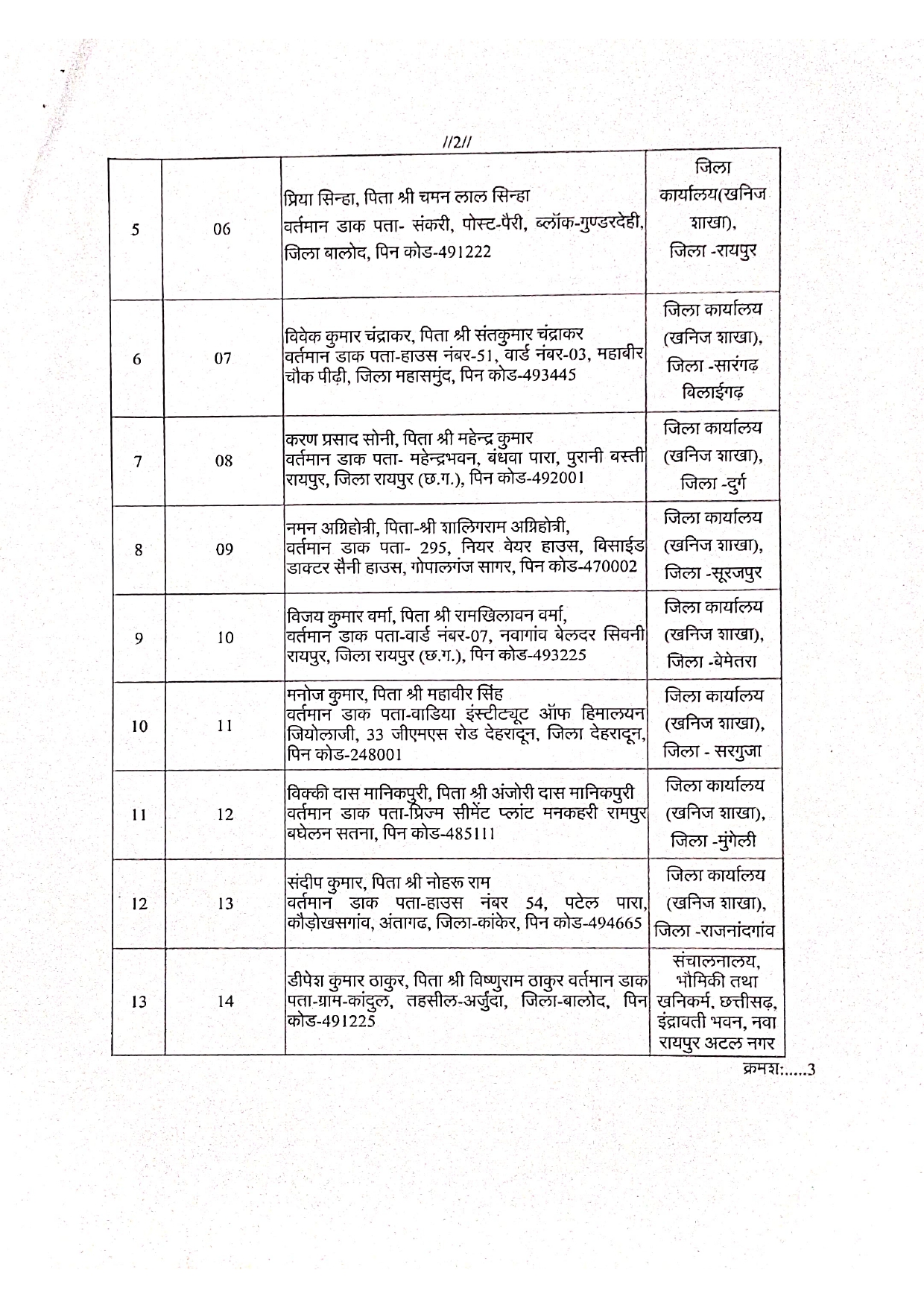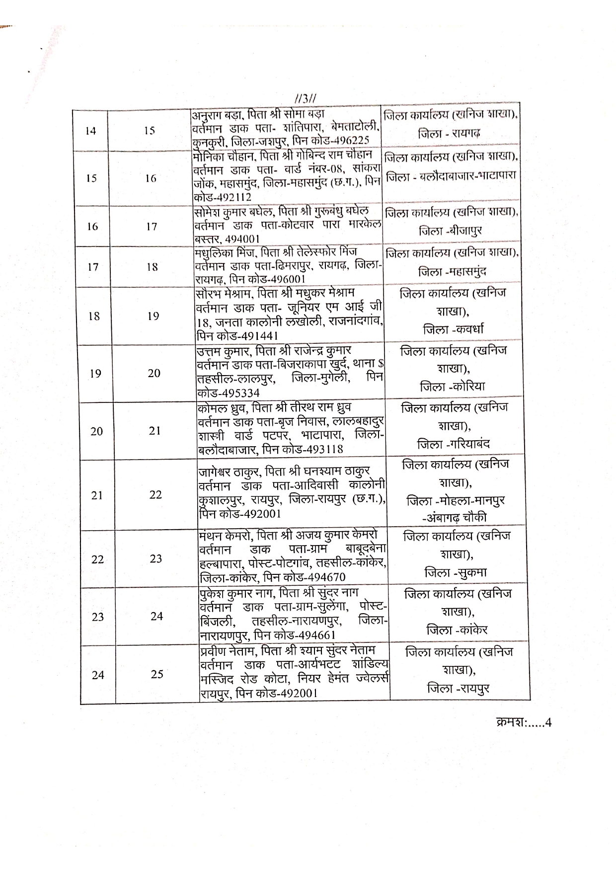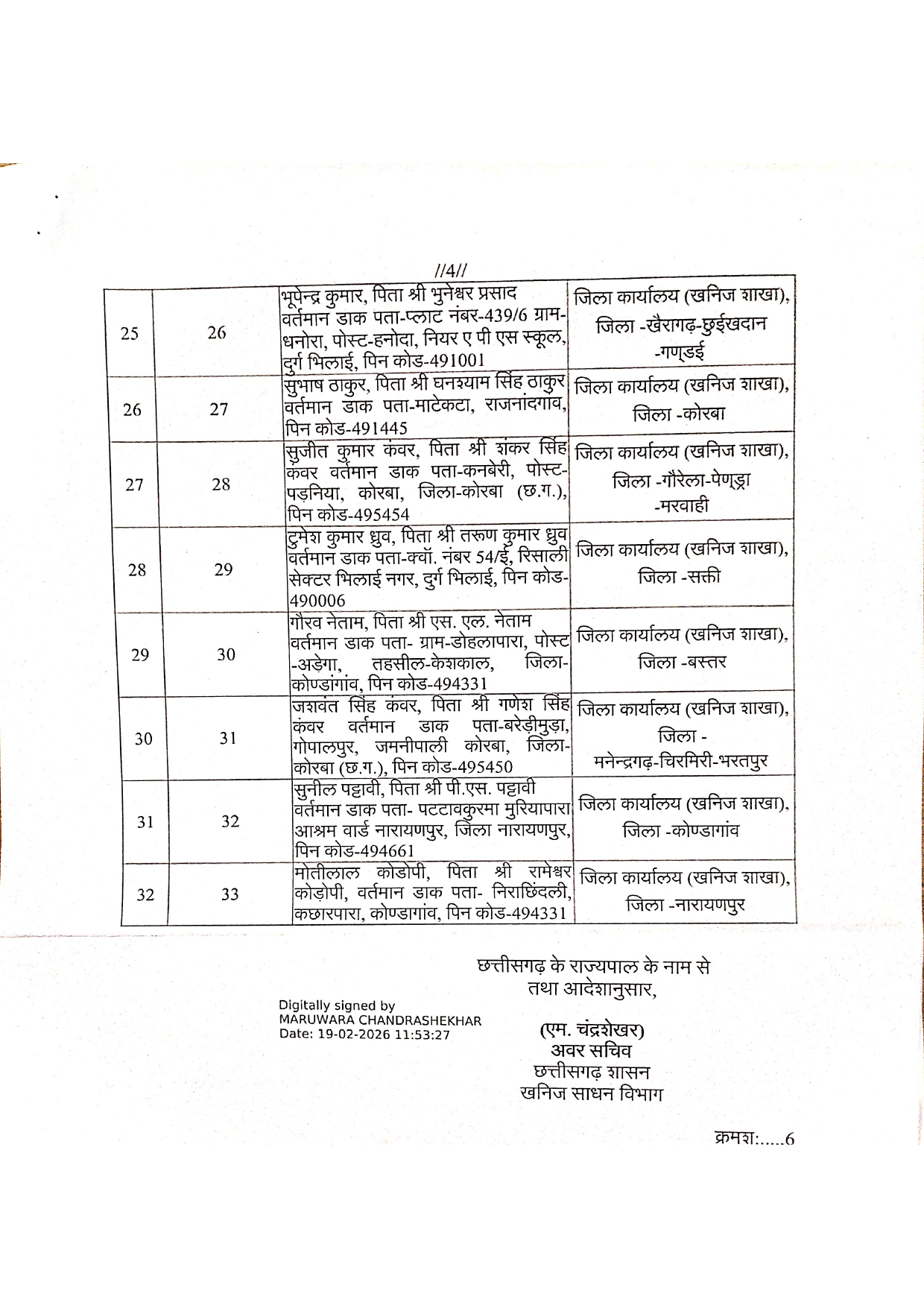 रायपुर, 19 फरवरी। सरकार ने 22 माइनिंग इंस्पेक्टरों की नियुक्ति की है। नवनियुक्त इंस्पेक्टरों  की पदस्थापना आदेश जारी कर दिए गए हैं।