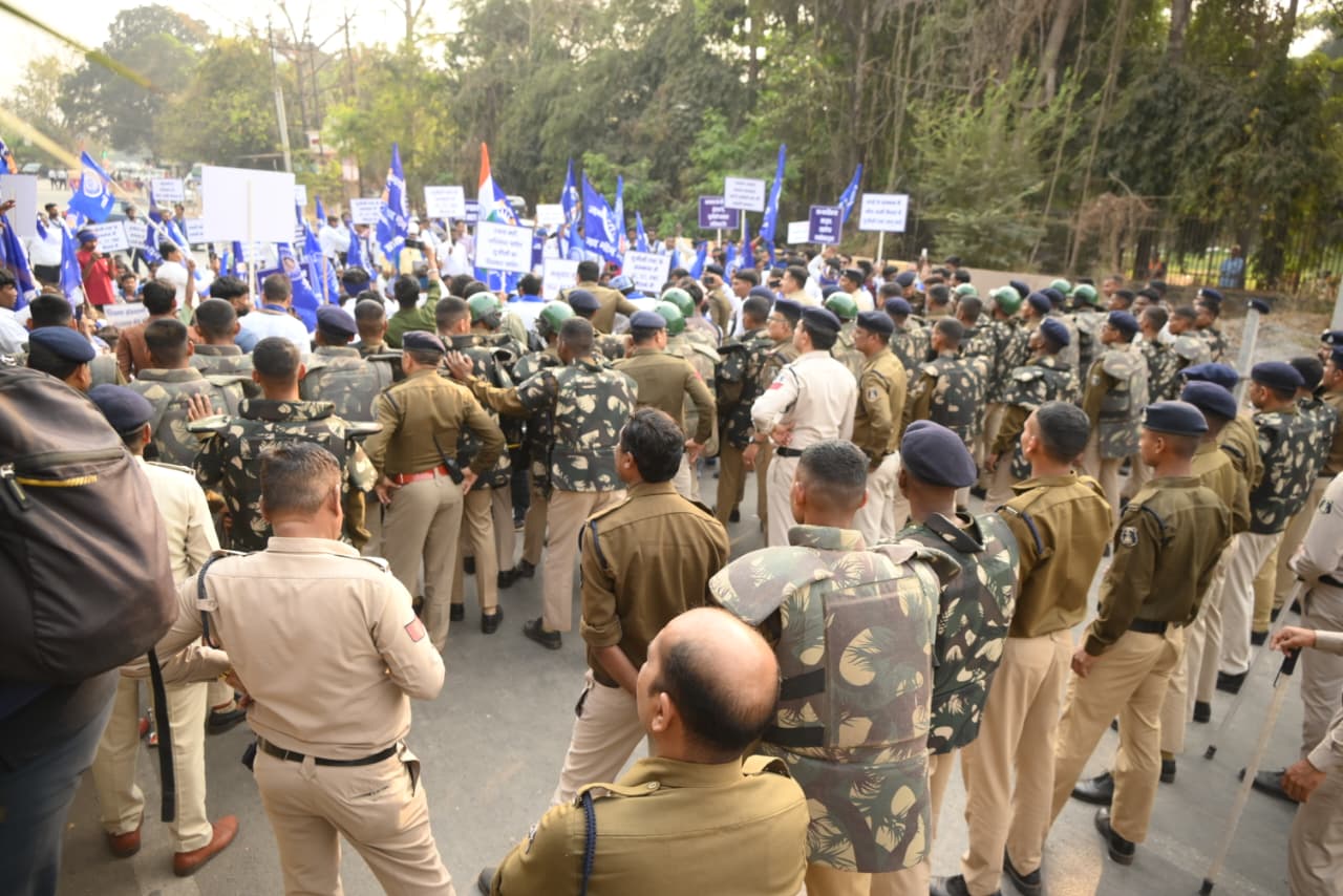 रायपुर, 20 फरवरी  । यूजीसी 26 के न‌ए नियम लागू करने की मांग को लेकर भीम आर्मी के कार्यकर्ताओं ने शुक्रवार को राजधानी में प्रदर्शन किया। वे राज्यपाल को ज्ञापन सौंपने लोकभवन जाने बूढ़ा पारा में एकत्रित हुए थे। वहां से रैली के रूप में निकले कार्यकर्ताओं को पुलिस ने मोती बाग के पास रोक दिया। इस दौरान काफी देर तक प्रदर्शन किया।