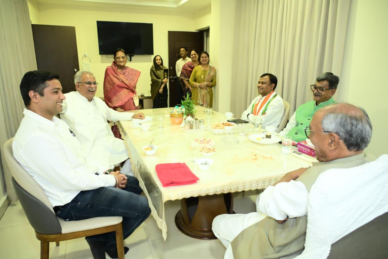 रायपुर, 25 फरवरी। मध्य प्रदेश के पूर्व मुख्यमंत्री एवं राज्यसभा सांसद दिग्विजय सिंह रायपुर स्थित कांग्रेस के राष्ट्रीय महासचिव और पूर्व सीएम भूपेश बघेल के निवास पहुंचे। उनके आगमन पर स्थानीय कांग्रेस नेताओं और कार्यकर्ताओं में उत्साह का माहौल रहा। पूर्व सीएम के बेटे चैतन्य बघेल और परिवार के सदस्यों ने उनका स्वागत किया।