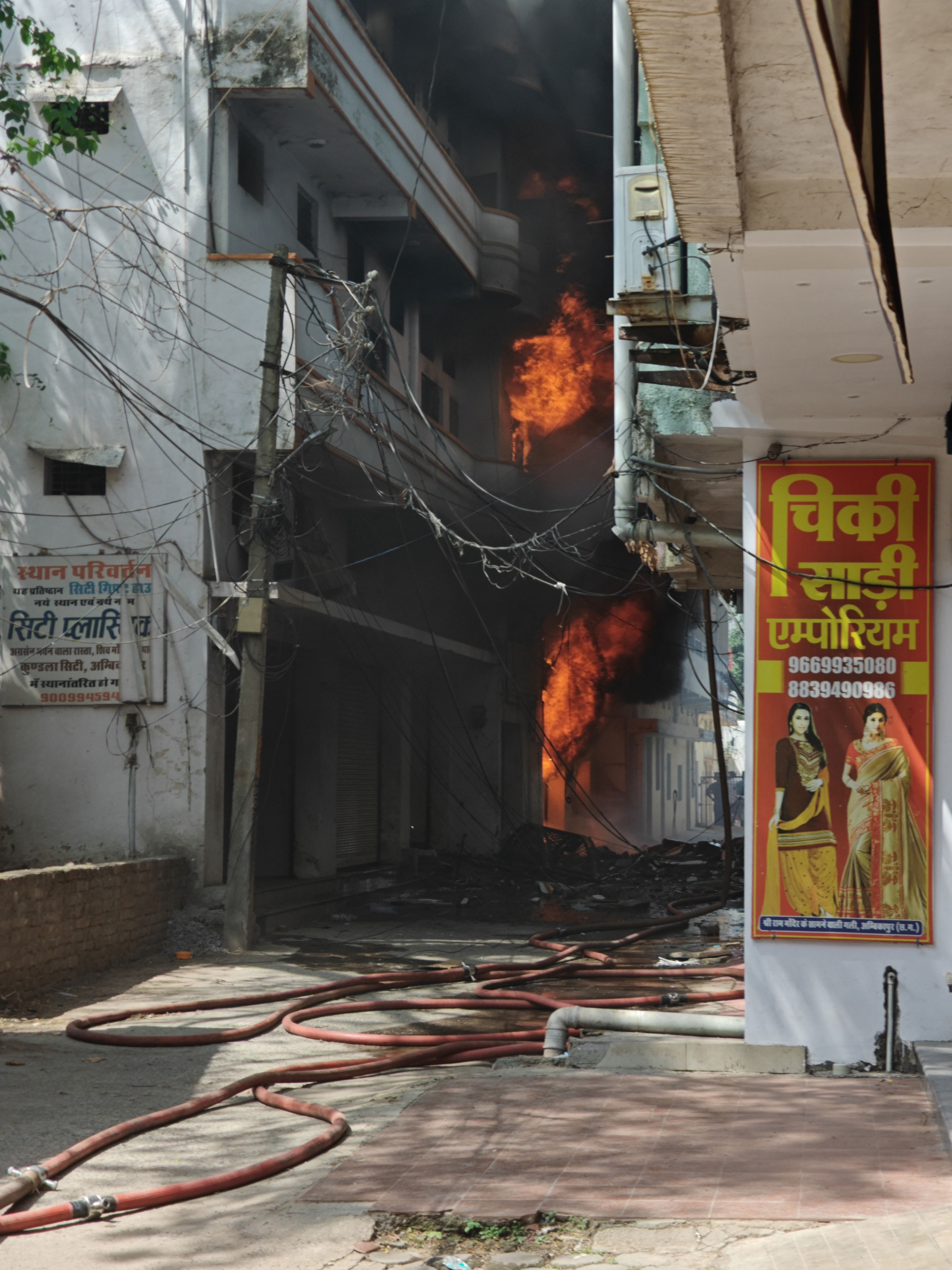जानकारी के अनुसार कोतवाली थाना क्षेत्र अंतर्गत राम मंदिर के पास स्थित मुकेश प्लास्टिक एवं पटाखा की दुकान में दोपहर लगभग 12 बजे वेल्डिंग के दौरान निकली चिंगारी से आग भड़क उठी। प्रारंभ में कर्मचारियों और परिजनों ने अपने स्तर पर आग बुझाने का प्रयास किया, लेकिन दुकान में रखे प्लास्टिक सामान और बड़ी मात्रा में पटाखों के कारण आग तेजी से फैल गई और कुछ ही समय में पूरी दो मंजिला इमारत जलकर खाक हो गई।