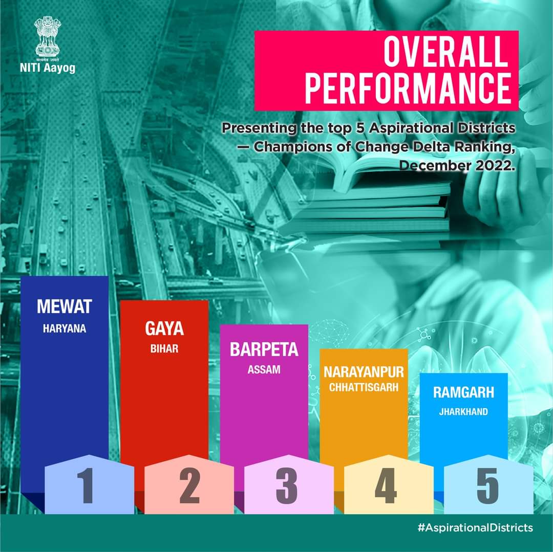 नारायणपुर , 8 फरवरी। भारत सरकार के नीति आयोग की ओर से आकांक्षी जिलों को लेकर रिपोर्ट जारी की जाती है। इसी कड़ी में दिसम्बर 2022 के लिए जारी की गई चैम्पियन ऑफ चेंज डेल्टा रैंकिंग में छत्तीसगढ़ के नारायणपुर जिले का परफॉर्मेंस बेहतर रहा है।