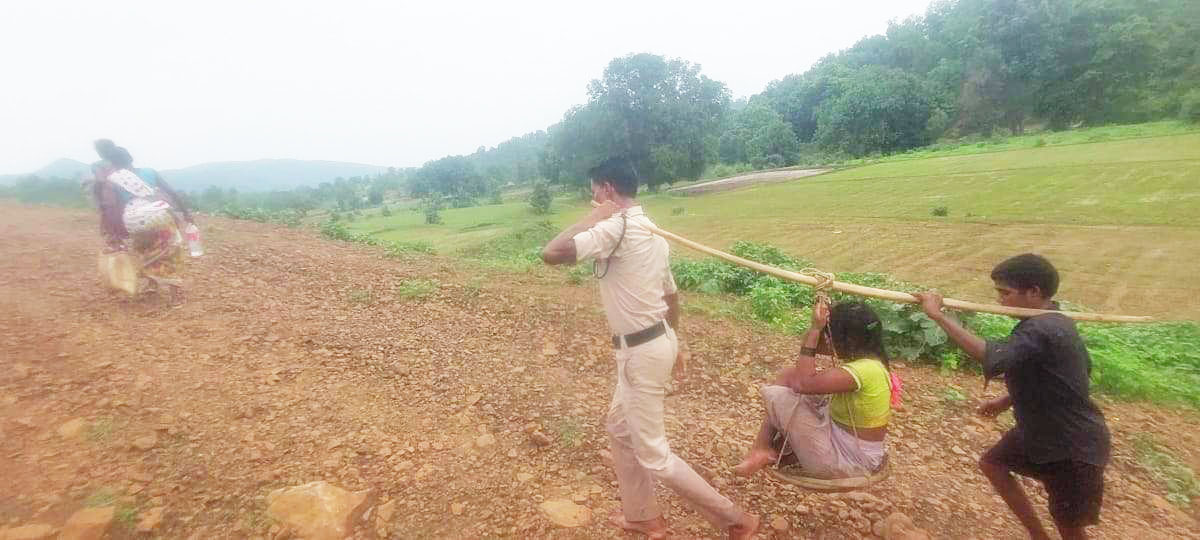 गर्भवती की स्थिति को देखकर बिना देरी किये आरक्षक प्रबल किशोर ने अपने साथी के साथ कावड़ से प्रसव पीडि़त महिला को वाहन तक ले जाने घरवालों को राजी किया और स्वयं एक युवक के साथ कांवर में महिला को उठाकर डायल 112 वाहन की ओर चल पड़ा।