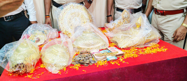 रायगढ़ , 23 जुलाई। रायगढ़ के प्रतिष्ठित श्री श्याम मंदिर से धार्मिक आभूषण और नकदी की हुई सनसनीखेज चोरी की गुत्थी को रायगढ़ पुलिस ने सुलझा ली है। इस मामले में सीमावर्ती ओडि़शा राज्य और पड़ोसी जिले सारंगढ़-बिलाईगढ़ के छह आरोपियों की गिरफ्तारी के साथ करीब 27 लाख रुपये मूल्य की चोरी गई संपत्ति की बरामदगी पुलिस की है।