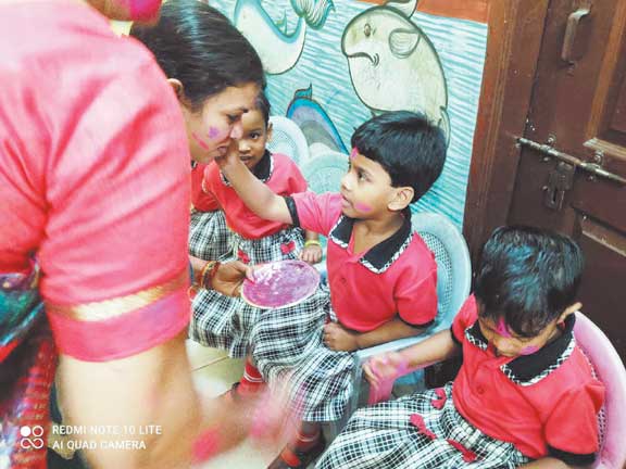 कृष्णा किंडरगार्टन स्कूल में होली धूमधाम से मनी