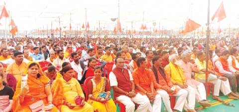 महाशिवरात्रि से प्रदेश के चार सिरो से शुरू हुई हिन्दू स्वाभिमान जागरण यात्रा का समापन रविवार को राजधानी के रावणभाटा मैदान में संत समागम के साथ हुआ। इसमें देशभर के सैकड़ों साधू संत शामिल है। समापम सभा की शुरूआत हनुमान चालिसा पाठ से हुई। सभा में अवि अवधेशानंद गिरि महाराज, दुधाधारी पीठ के प्रमुख महंत रामसुंदरदास भी मौजूद रहे। ये संत भारत को हिन्दू राष्ट्र बनाने की मांग कर रहे। अवधेशानंद ने कहा भीड़ का ऐसा नजारा कुंभ में ही दिखाई देता है। अमेरिका में हुए एक शोध में साबित हो चुका है कि हिन्दू धर्म और संस्कृति का संचार पूरे विश्व में छा रहा है। अमेरिका में 12 लाख योग केन्द्र है।