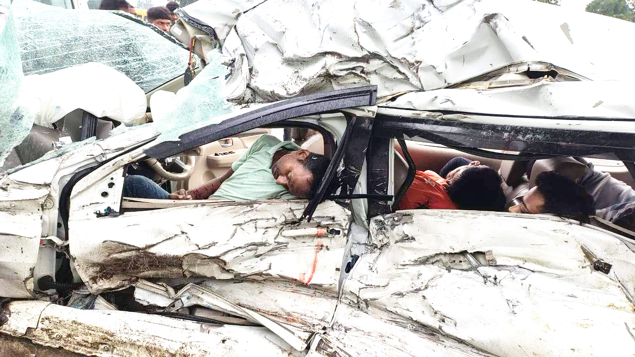 शुक्रवार सुबह लगभग 6 बजे जैसे ही उनकी कार सडक़ चिरचारी के करीब पहुंची तो कार चालक सागर यादव के आंख में लाईट पडऩे से वह चौंधिया गया। डिवाइडर को पार कर उसकी कार दूसरी लेन में चिचोला से बागनदी की ओर जा रही ट्रक से जा भिड़ी। इस हादसे में कार बुरी तरह से क्षतिग्रस्त हो गई। घटना में चालक को छोडक़र शेष कार सवारों की मौत हो गई।