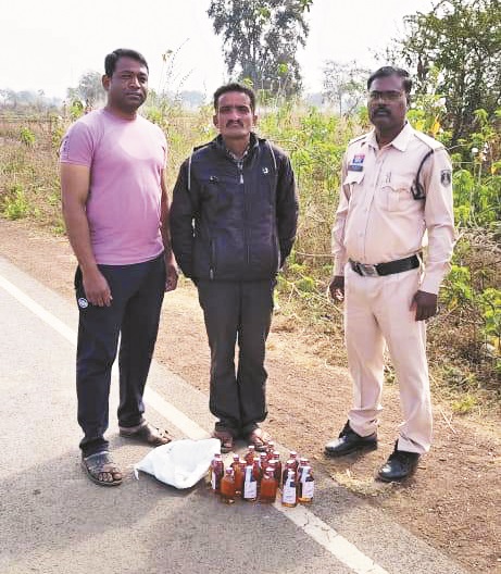 अवैध गांजा शराब बिक्री व असामाजिक तत्व गुुण्डा बदमाश और सार्वजनिक स्थानों पर शराब पीने वालों के विरूद्ध अभियान चलाया जा रहा है अभियान कार्यवाही करते हुए एक व्यक्ति गठुला से बरगाही जाने वाले मार्ग मे अवैध रूप से शराब रखने की सूचना पर मौके पर घेराबंदी कर आरोपी सत्यनारायण शर्मा पिता अवधराम शर्मा उम्र 42 साल साकिन रेंगाकठेरा ओपी सुकुलदैहान थाना लालबाग जिला राजनांदगांव को पकड़े जिसके कब्जे से 18 पौवा जम्मू स्पेशल व्हीस्की शराब जुमला मात्रा 3240 एमएल कीमती 2160 रूपये को जब्त कर आरोपी के विरूद्ध धारा 34;1 आबकारी एक्ट के तहत् विधिवत कार्यवाही किया गया।