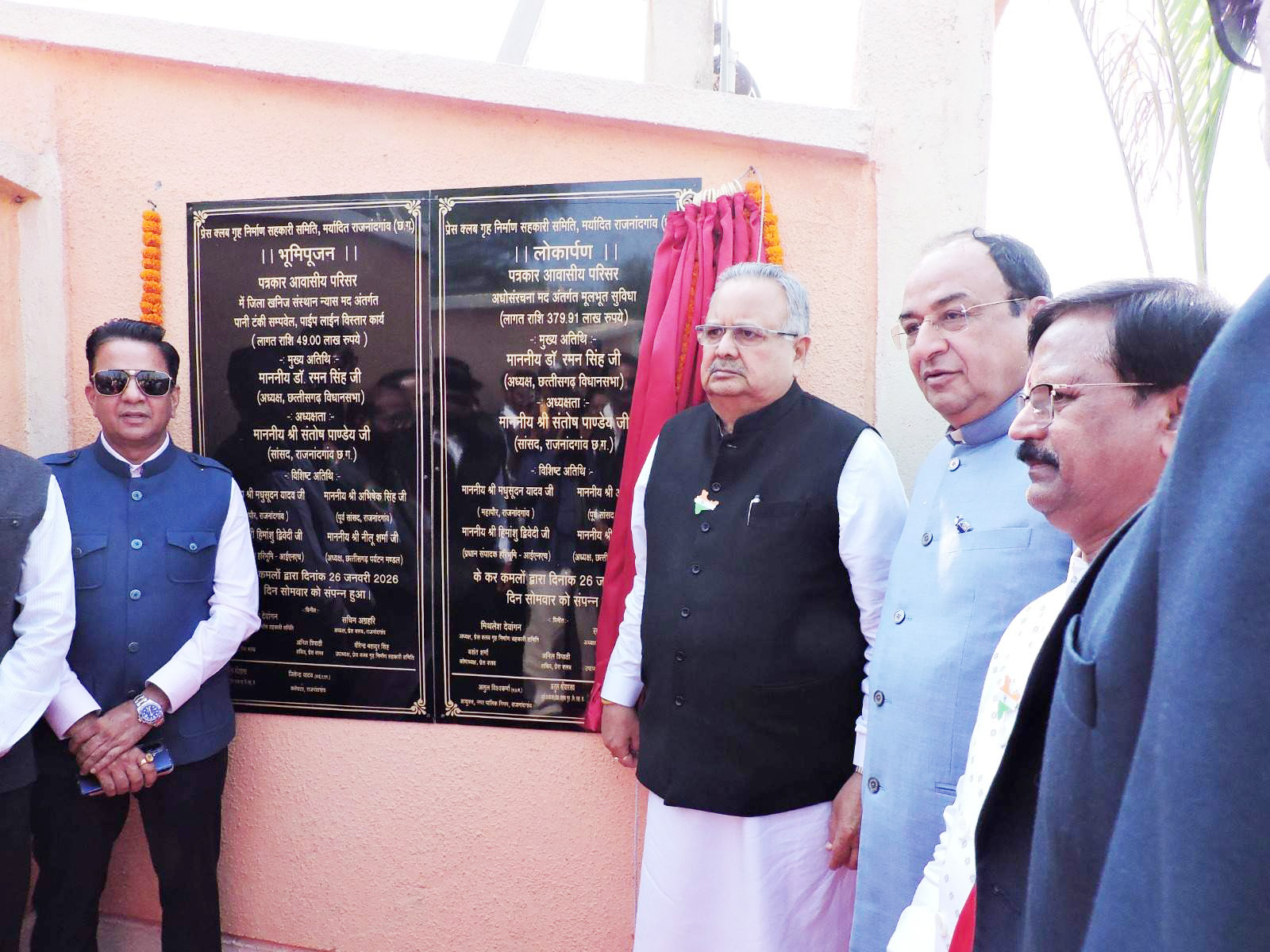 विस अध्यक्ष डॉ. रमन सिंह ने 3 करोड़ 79 लाख 91 हजार रुपए की लागत से पत्रकार आवासीय परिसर का लोकार्पण किया तथा परिसर में 49 लाख रुपए की लागत से पानी टंकी सम्पवेल एवं पाईप लाइन विस्तार कार्य के लिए भूमिपूजन किया। उन्होंने कहा कि संस्कारधानी राजनांदगांव का गौरवशाली इतिहास रहा है और आज उसी क्रम में एक नया नाम जुड़ रहा है। उन्होंने कहा कि राजनांदगांव के पत्रकारों की मेहनत, परिश्रम और एकजुटता से पत्रकार कॉलोनी का निर्माण किया गया है।