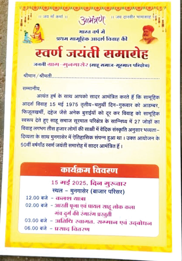 निमंत्रण में कहा गया है कि- मां की गोद में मौसी की शादी देखी थी, आज उसी विवाह का हो रहा है स्वर्ण जयंती उत्सव!