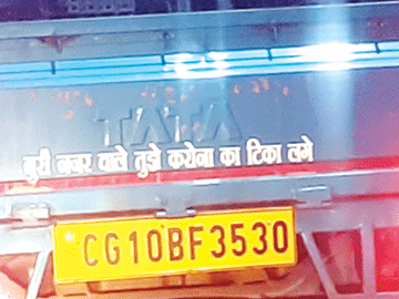 यह संदिग्ध तरह का स्लोगन एक ट्रक में दिखा। अपने आप में यह कोरोना