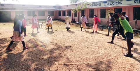 स्कूल जायें तो सहपाठियों के साथ खेलने का मौका तो मिलना ही चाहिये। पर सोशल डिस्टेंस के बीच यह कैसे मुमकिन है। है, यह बता रहे हैं जशपुर जिले के मनोरा के हाईस्कूल में पढऩे वाले बच्चे। वे खेल भी रहे हैं पर दो गज की दूरी भी रखी है और मास्क भी पहने हुए हैं। मौका था, स्कूल में चलाये गये टीकाकरण अभियान का।