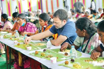 मास्क पहनकर खाना खाते राहुल