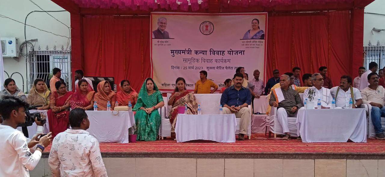 सारंगढ़, 25 मार्च। जिला प्रशासन के सहयोग से मुख्य मंत्री कन्या विवाह योजना अंतर्गत सारंगढ़ में सामूहिक विवाह का आयोजन किया गया। इस कार्यक्रम में मुख्य अतिथि विधायक सांरगढ़ उत्तरी जांगड़े, कलेक्टर डॉ. फरिहा आलम सिद्दीकी और पुलिस अधीक्षक आशुतोष सिंह उपस्थित थे। इस कार्यक्रम का आयोजन महिला एवं बाल विकास विभाग द्वारा किया गया था। इस समारोह में सारंगढ़ और बरमकेला से कुल 120 जोड़े विवाह बंधन में बंधे।