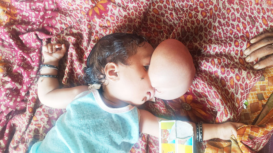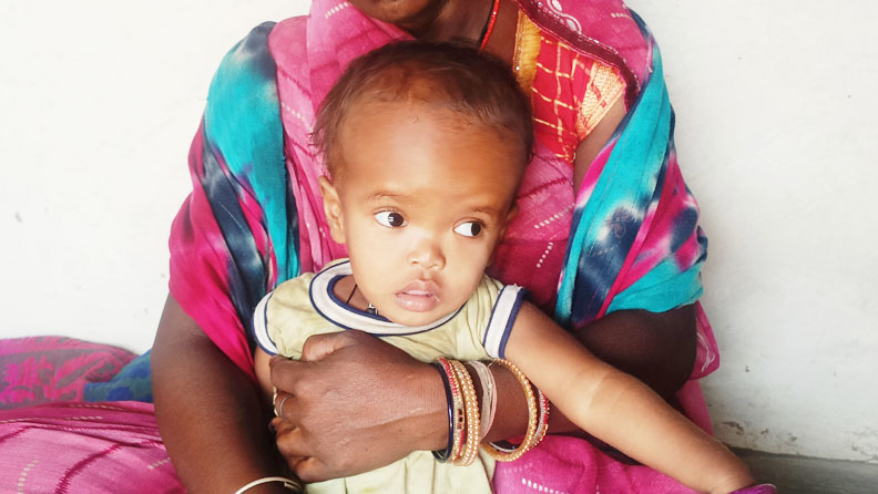 भरतपुर तहसील के ग्राम पंचायत देवगढ़ के आश्रित ग्राम छपराटोला निवासी मुकेस बैगा की बेटी अंजली बैगा का सिर उपर की ओर से बड़ा और कठोर होता जा रहा है, ऐसा जन्म के बाद से हो रहा है। उनकी उम्र लगभग 2 वर्ष होने को है, पहले वो सुनती भी थी, परन्तु अब उसको सुनाई देना बंद कर दिया हैै। मुकेश की आर्थिक स्थित मजबूत नहीं है, जिसके कारण उसने एक-दो बार उसके इलाज की कोशिश की, परन्तु अब उसके इलाज के लिए प्रयास नहीं कर पा रहा है।