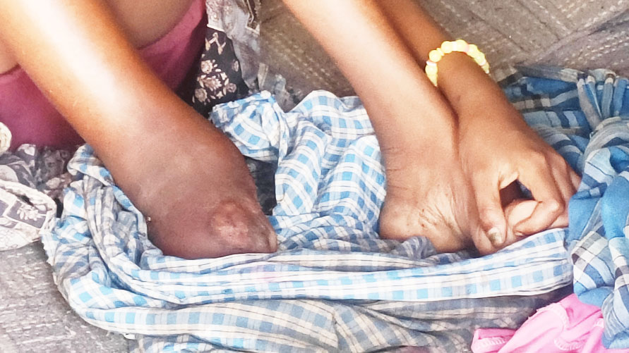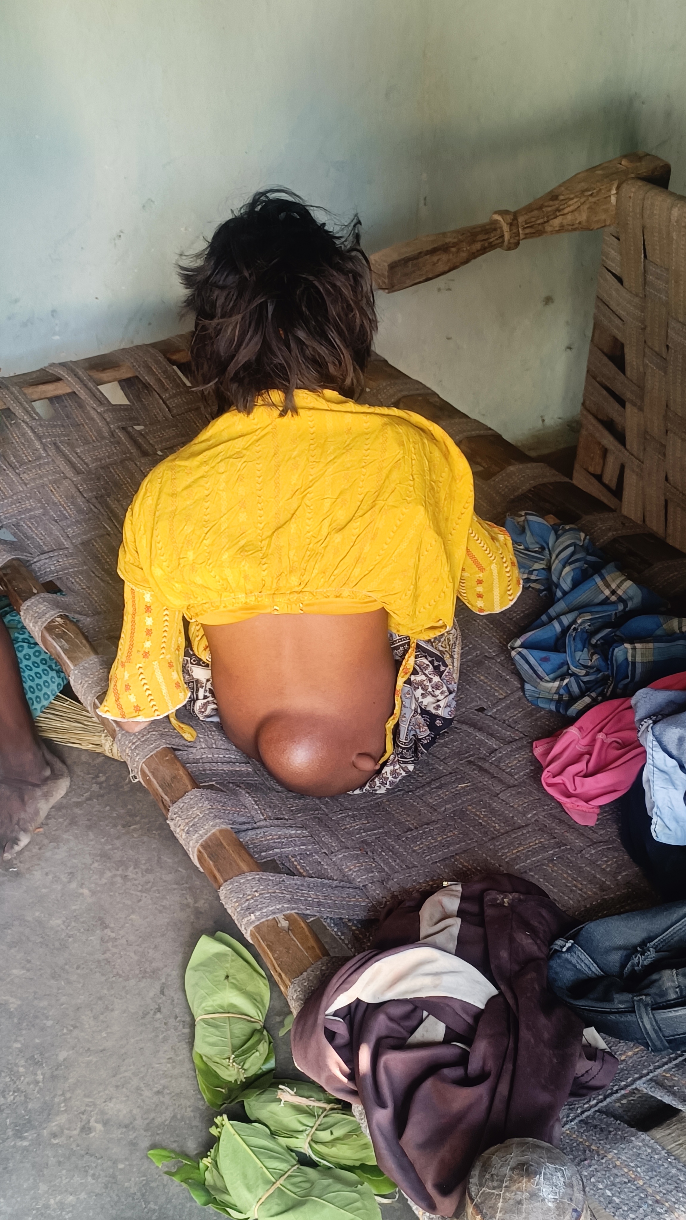 गोंड आदिवासी परिवार में 16 वर्ष पहले जन्मी ज्ञानवती के पीठ के नीचे छोटा घाव था, जो अब बढक़र काफी बड़ा हो गया है। ज्ञानवती के पिता बताते हंै कि एक साल पहले वो चल फिर सकती थी, परन्तु अब एक साल से उसका चलना फिरना बंद हो गया है, पीठ में घाव है और उसका मवाद उसके दाएं पैर से निकलता है, पहले पैर में सभी उंगलियां थी, परन्तु मवाद के निकलते रहने से दाएं पैर की उंगलियां भी गल गई हैं।