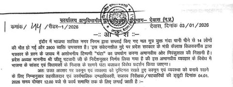 एसडीएम ने इंदौर की घटना को लेकर कांग्रेस को प्रदर्शन की अनुमति दी। यह सामान्य बात है। पर अनुमति देने वाले आदेश में जो शब्द लिखे गए, वही उनके लिए संकट बन गया। आदेश में उल्लेख किया गया कि इंदौर में भाजपा शासित नगर निगम द्वारा सप्लाई किए गए कथित रूप से मल-मूत्रयुक्त पानी से 14 लोगों की मौत हुई और 2800 से अधिक लोग बीमार पड़े। साथ ही, प्रदेश सरकार के मंत्री कैलाश विजयवर्गीय की कथित टिप्पणी घंटा को असंवेदनशील बताते हुए, कांग्रेस के प्रदेश अध्यक्ष जीतू पटवारी के निर्देश पर विरोध प्रदर्शन की घोषणा की गई है।