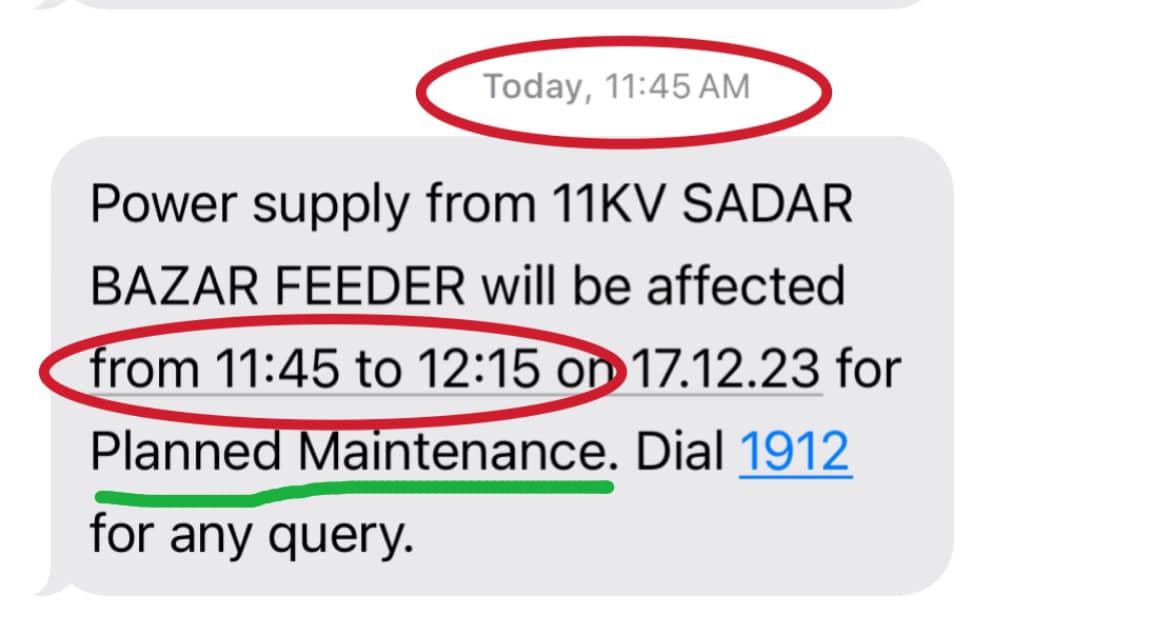 वे दिन गए जब बिजली विभाग अखबारों में सूचना देकर बताता था कि अगले दिन मेंटेनेंस या और किसी कारण से फलां-फलां इलाके में आपूर्ति बंद रखी जाएगी। यदि बिजली संबंधी कोई जरूरी काम है तो निपटा लें। पर, अब मोबाइल फोन का दौर है। वह उपभोक्ताओं को सीधे मेसैज कर देता है। पर कई बार संदेश कटौती के बाद मिलता है। इस उपभोक्ता के पास कम से कम ठीक उस वक्त सूचना आ गई कि तत्काल बिजली कटौती शुरू की जा रही है। ([email protected])