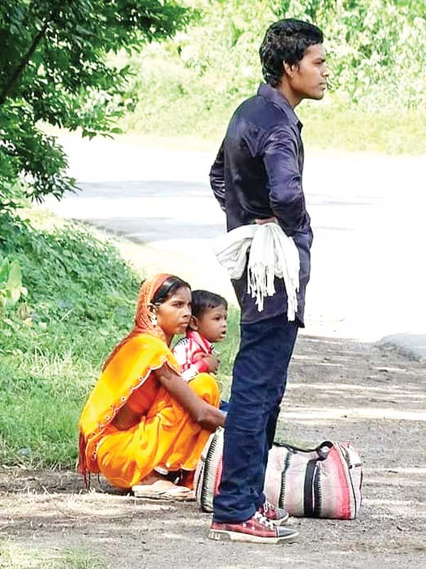 तिजहारिन बस के इंतजार में...