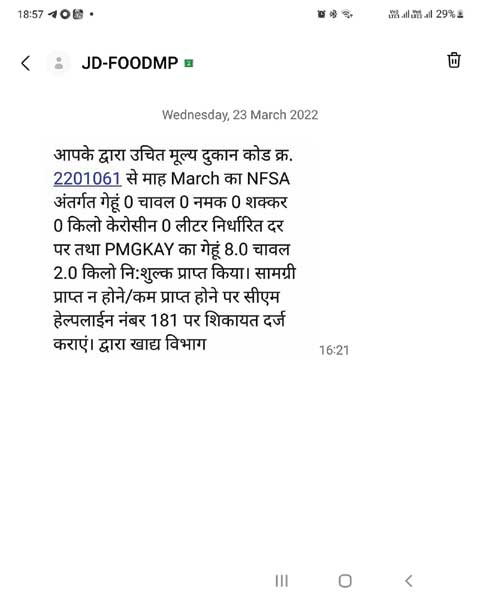 मध्यप्रदेश की भाजपा सरकार का भेजा गया राशन का एक मैसेज छत्तीसगढ़ के एक अखबारनवीस के फोन पर आया है जिसमें दुकान के नंबर सहित यह लिखा हुआ है कि प्रधानमंत्री की राशन योजना के तहत मार्च का 8 किलो गेहूं, और 2 किलो चावल उसे दिया गया है। इसके साथ ही दुकान का नंबर भी दिया गया है। अब चूंकि छत्तीसगढ़ के एक पत्रकार के नंबर पर यह संदेश आ रहा है, इसलिए इस बात का खतरा दिखता है कि यह राशन कहीं इधर-उधर किया गया हो। जिस तरह आजकल मोबाइल पर कई दूसरे किस्म की जालसाजी के मैसेज आते रहते हैं, यह भी एक सरकारी जालसाजी या लापरवाही का मैसेज है।