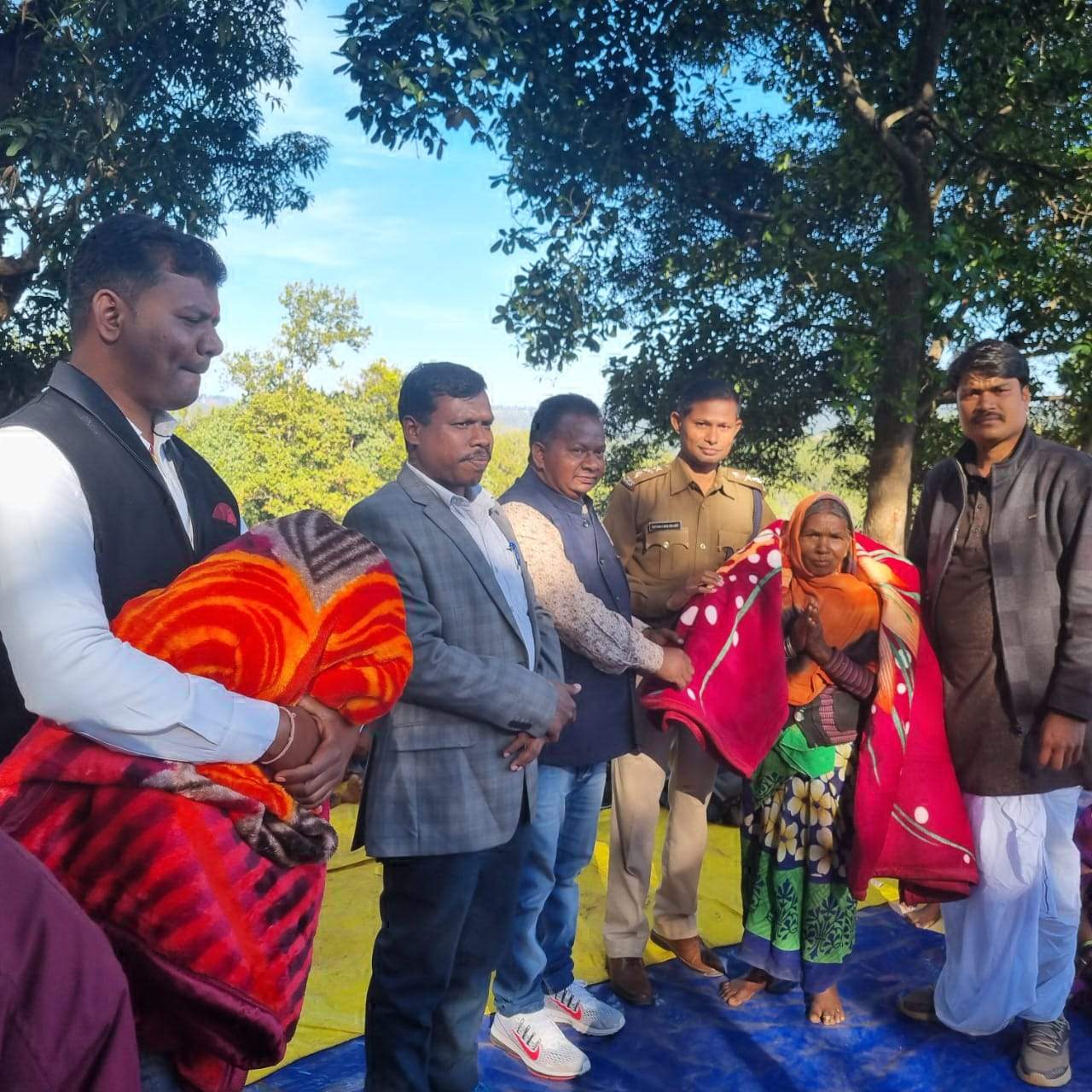 ग्रामीणों को कंबल वितरण, मांदर की थाप पर थिरके अधिकारी