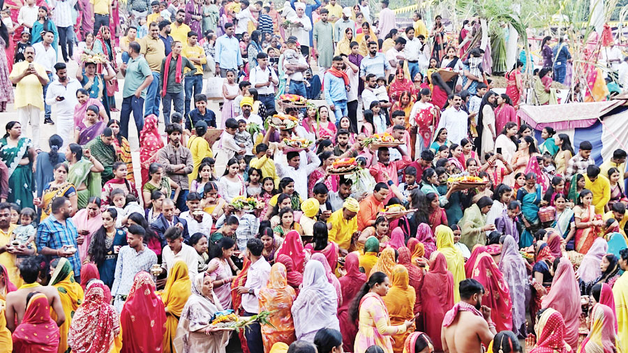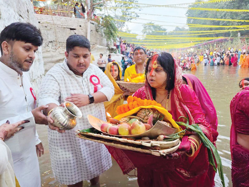 अस्ताचलगामी सूर्य को हजारों छठ व्रतियों ने दिया अघ्र्य, परिवार की सुख-समृद्धि का मांगा आशीर्वाद